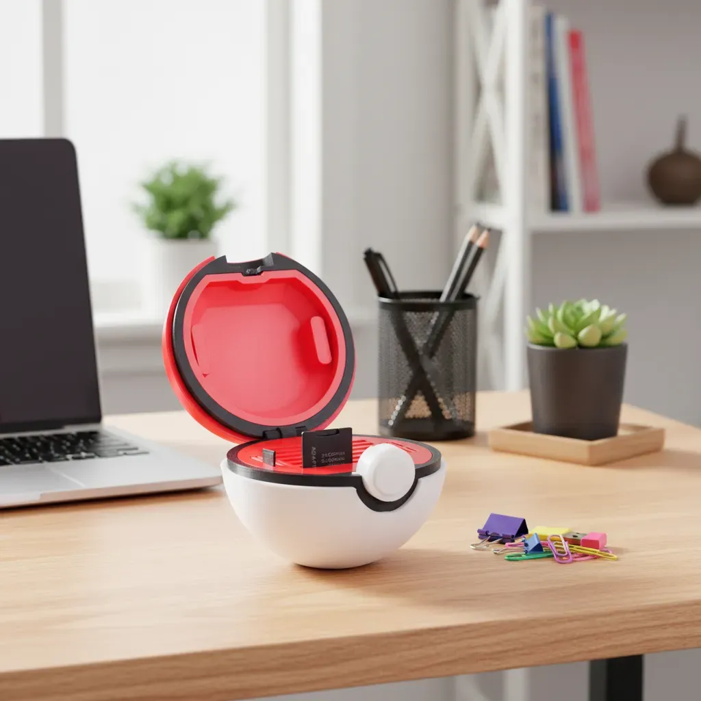 🔴 Diseño inspirado en la Pokébola, con mecanismo de cierre seguro para evitar aperturas accidentales.