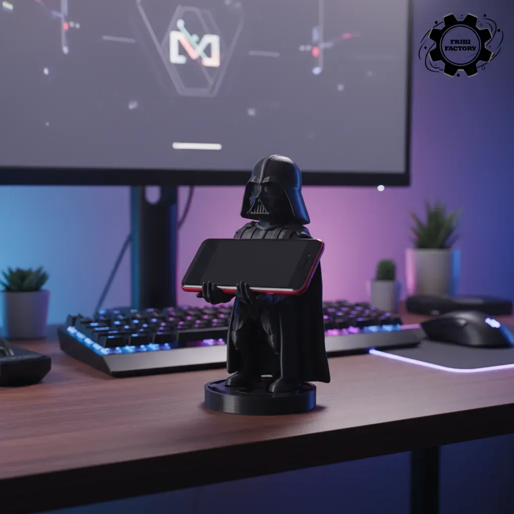 Con 24.5 cm de alto, 11.5 cm de ancho y 12.5 cm de fondo, este soporte impone en cualquier escritorio o zona gamer. Fabricado en PLA de alta calidad mediante impre...